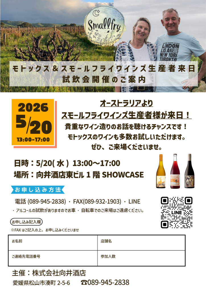 📅 5/20(水)モトックス&スモールフライワインズ生産者来日試飲会